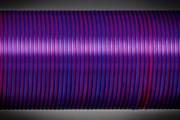 Durch ein spezielles Herstellungsverfahren mit zwei Extrudern ist jeder Millimeter zu 50% aus der ersten Farbe und 50% aus der zweiten Farbe. Somit haben auch kleine Drucke immer zwei Farben.